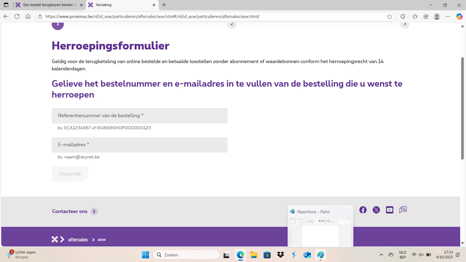 Ik probeer een online bestelde smartphone te retourneren binnen de 14 dagen.