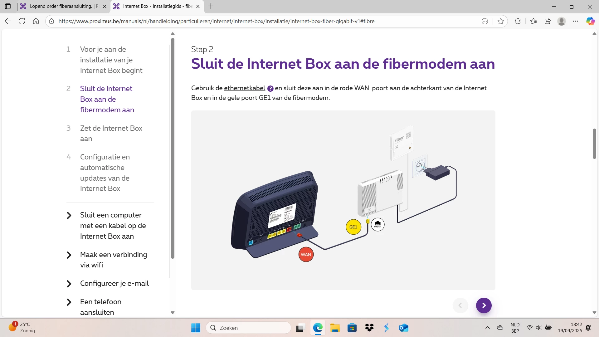 Op 15 sept. werd de kabel binnengebracht maar de ploeg van fiberklaar stelt vast dat er geen signaal zit op de hoofdkabel (er moet nog een verbinding gemaakt worden naar de overkant van de straat).