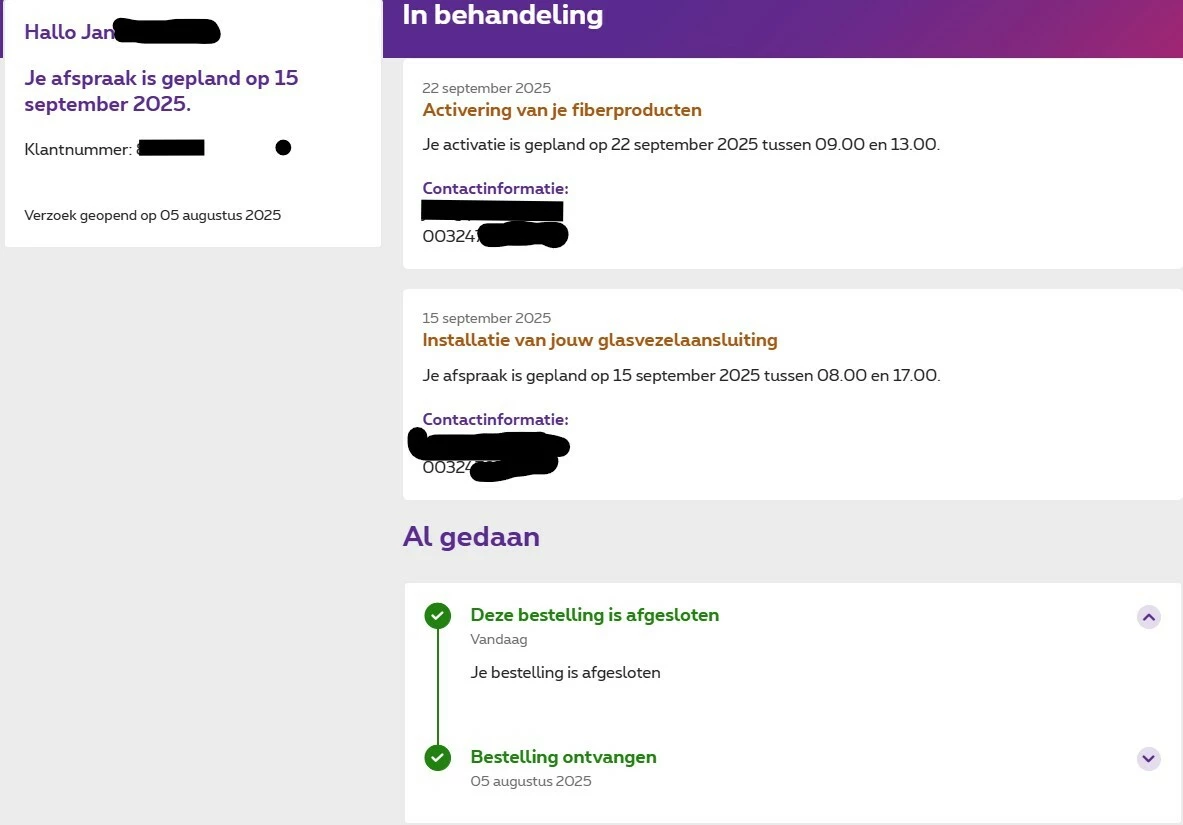 Mijn fiberaansluiting die gepland was deze week maar is uitgesteld tot een latere datum.