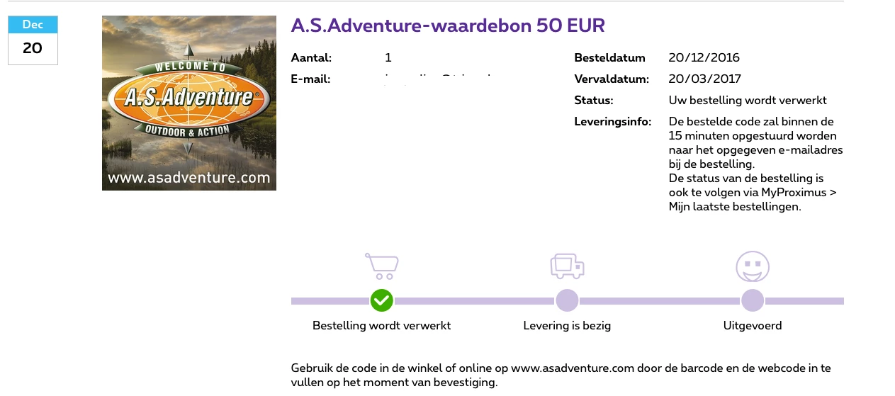 Ik heb onze punten op 20 december jl ingeleverd voor een kortingsbon van AS Adventure..... na 15 min zou ik de code doorkrijgen..... dit was bestemd als kerstcadeau voor één van onze medewerkers.