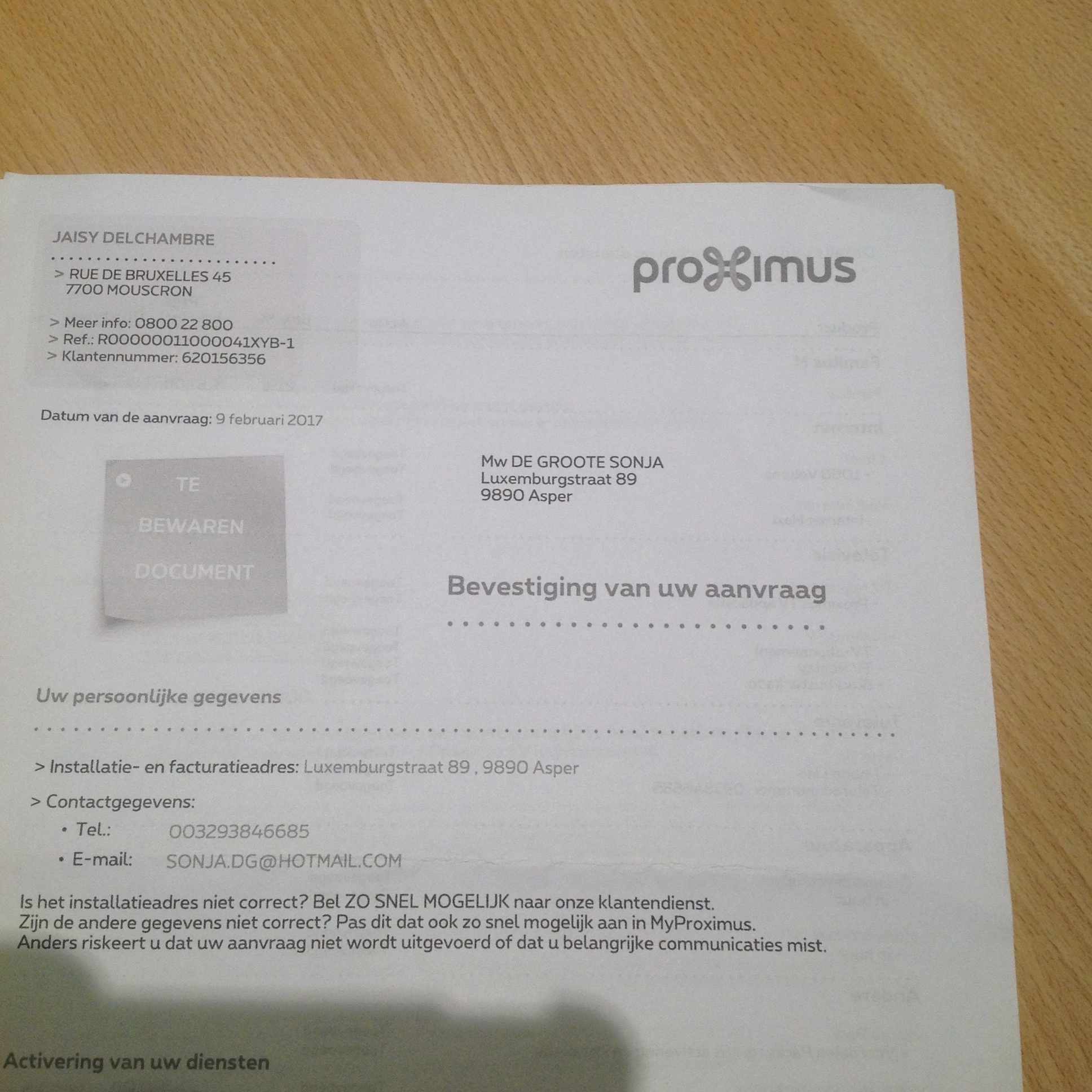Proximus heeft vorige week gebeld en had mijn zoon aan de lijn en zeiden dat ze een brief gingen sturen, nog niet ontvangen. Heb er het raden naar over wat.