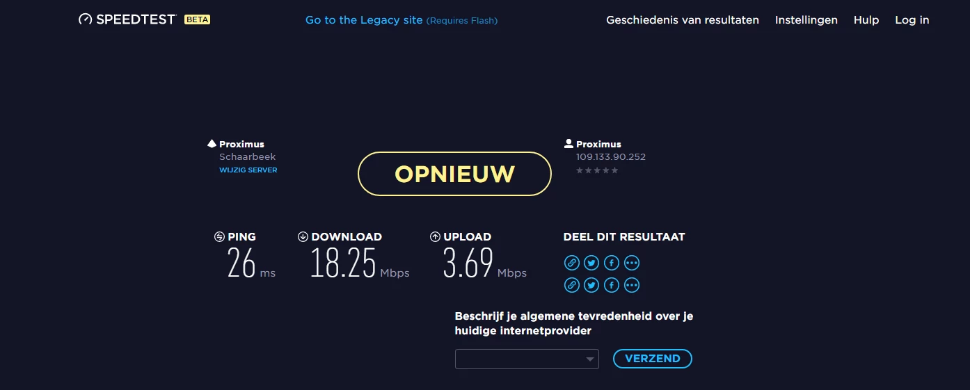 ons internet ervaren we in onze nieuwe woonst sinds 2 jaar als algemeen traag. Er zijn al verschillende techniekers langs gekomen en er valt niets meer te verbeteren aan de instellingen en toestellen. Sinds een paar weken is het (weer) opvallend zeer traag. We vermoeden eigenlijk dat het probleem zich eerder buiten ons huis bevind. Internet ging opnieuw iets beter na een vorige klacht en een technieker die het netwerk in een kast op de straat controleerde. Is het mogelijk na te gaan hoe het zit met ons (buiten)netwerk en of er aanpassingen/moderniseringen noodzakelijk zijn. In afwachting zou ik graag hebben dat onze snelheid opnieuw kan verhoogd worden. Vermits het een paar weken geleden drastisch omlaag ging denk ik dat dit ook weer omhoog kan. In bijlage een speedtest die ik net deed en voor zich spreekt: down 0.32, up 0.07