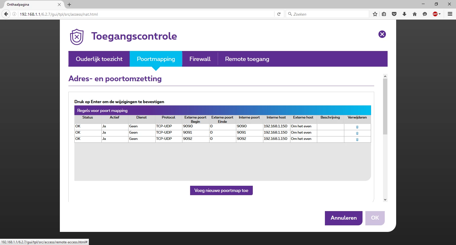 Ook na het forwarden van de poorten op mijn bbox3, kan ik niet via het http protocol connecteren naar mijn recorder, deze recorder heeft ook een statisch IP 192.168.1.150 en dit is ook zo ingesteld in op mijn bbox3.