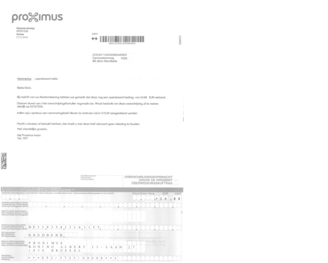 Na reeds meerdere malen telefonisch contact en visites aan een proximus center,