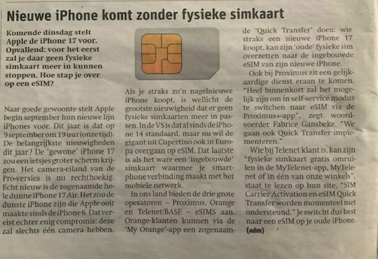 Sinds dec 2021 biedt Telenet eSIM aan voor de Apple Watch.
