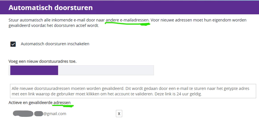 Het werkt als ik eerst 1 Gmail adres toevoeg en “Automatisch doorsturen inschakelen” aanzet (na bevestiging).
