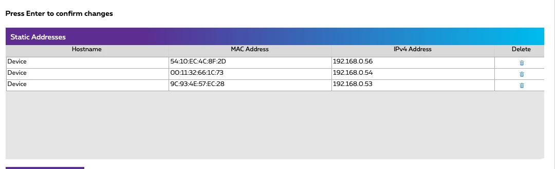 ik heb 3 fixed IP adressen in mijn router staan, de 2 eerste gaan altijd goed maar hetgeen op 53 eindigt wordt nu en dan toch nog toegekend aan een ander toestel. Bestaat hier een oplossing voor?