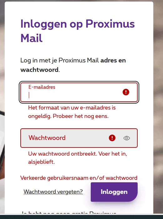 Geen webmail , email onbekend , verkeerd wachtwoord , niet gekoppeld aan een account ?