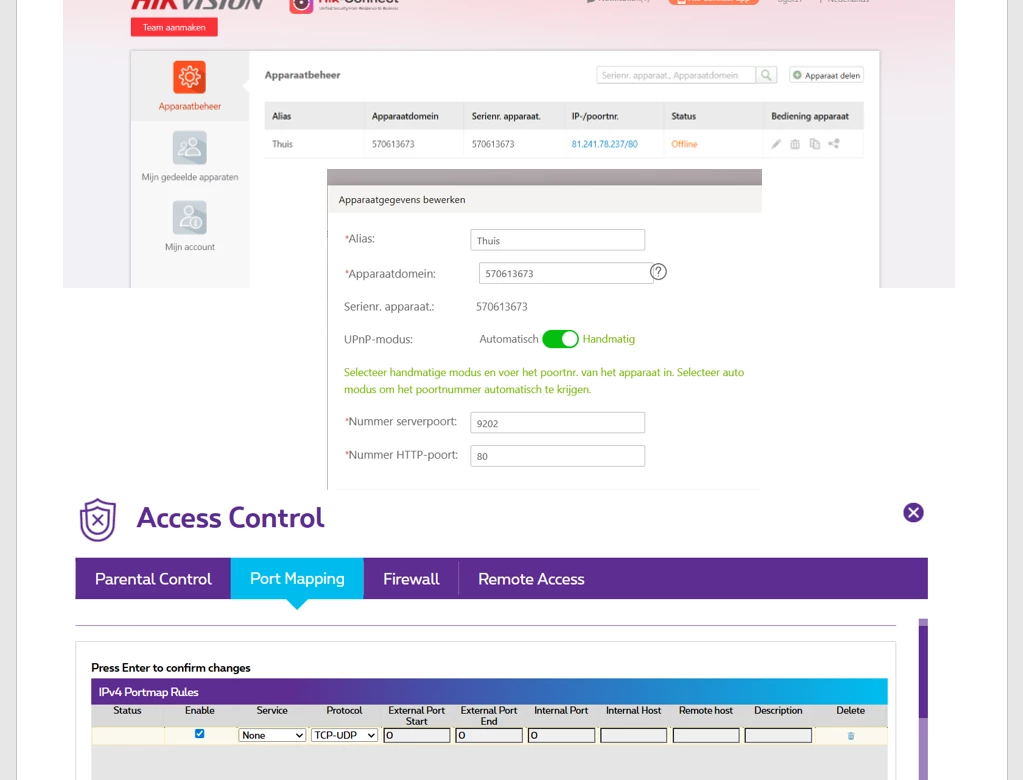 hoe vul ik deze gegevens correct in zodat deze poorten open gaan en ik hopelijk terug mijn cameras kan zien.