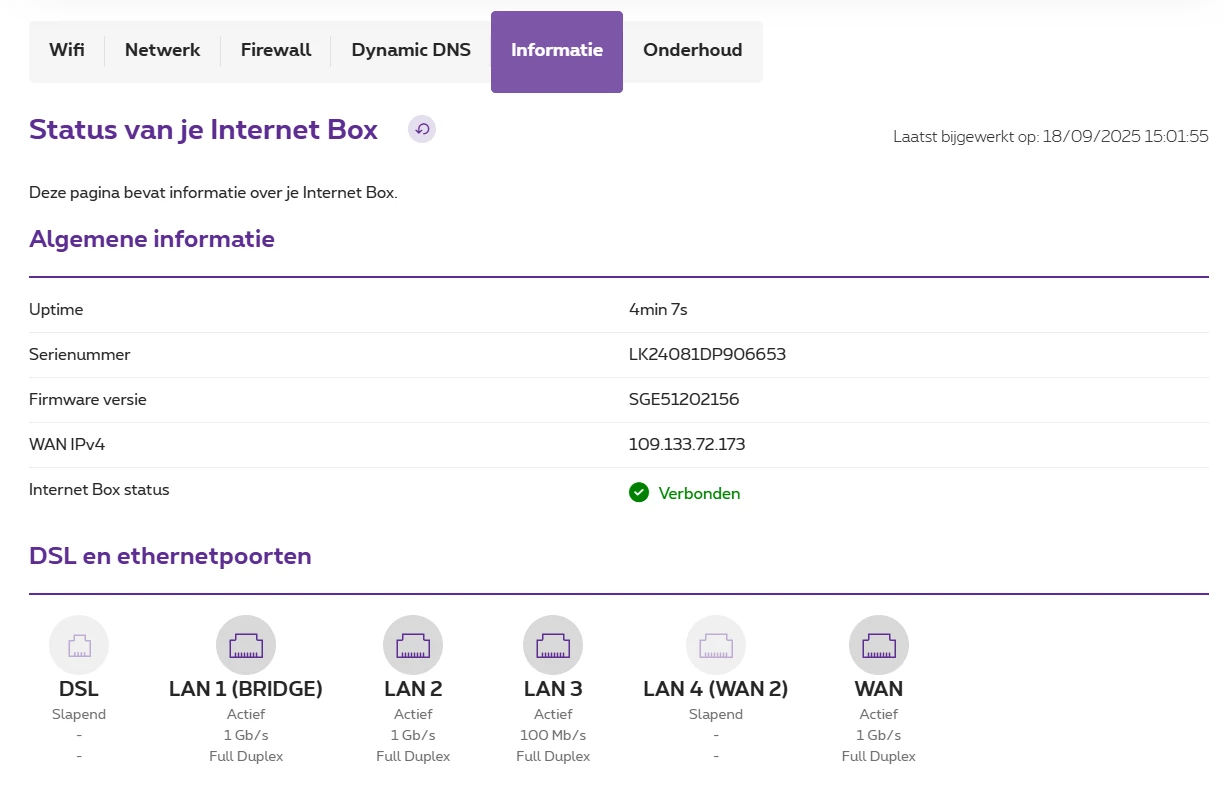 Ik heb een Fiber installatie met internet box thuis. Ik gebruik 3 LAN-poorten: