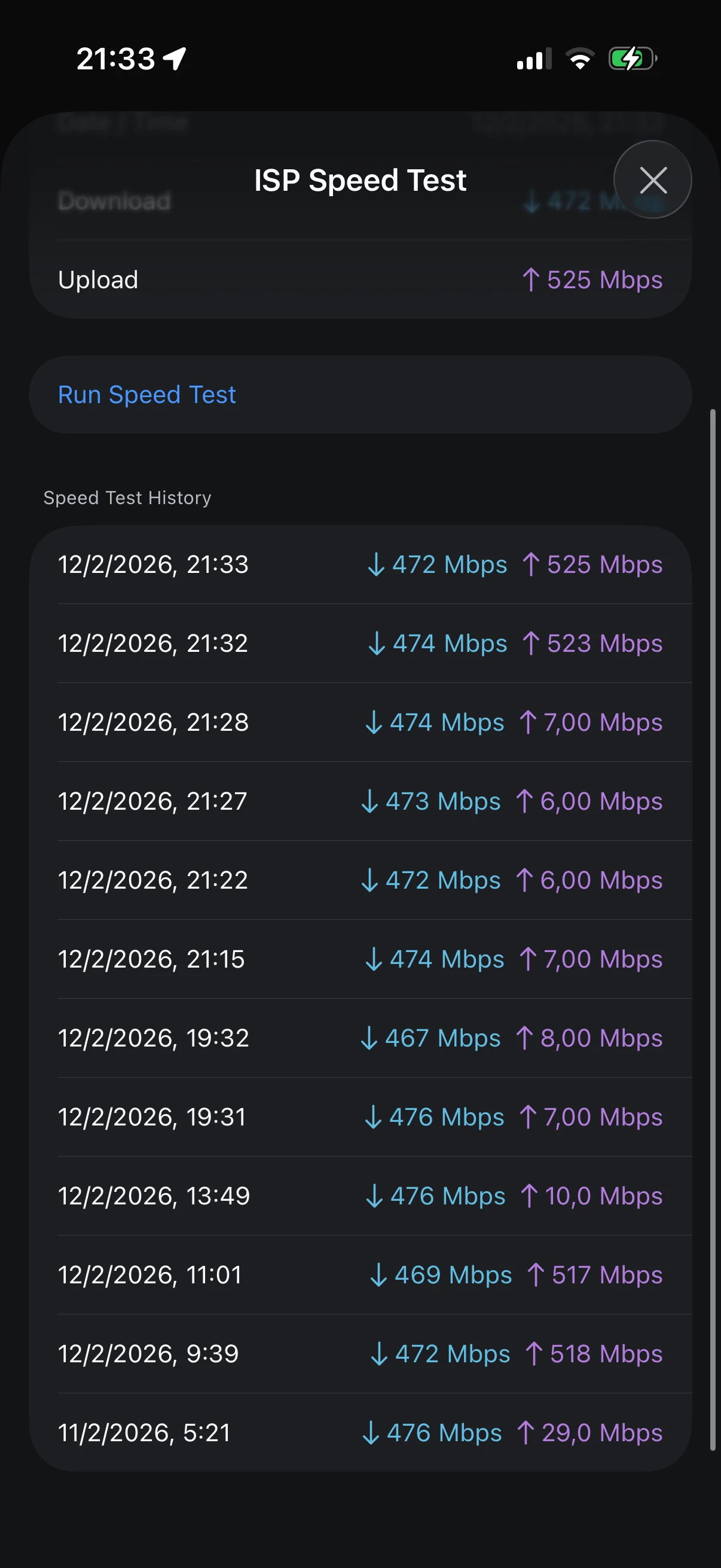 Als ik de usg achter de internetbox zet in bridged mode haal ik 500 down en 500 up.
