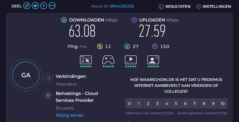 Ik stel vast dat mijn internet snelheid verlaagt is van ± 90 Mbps naar ± 60 Mbps.