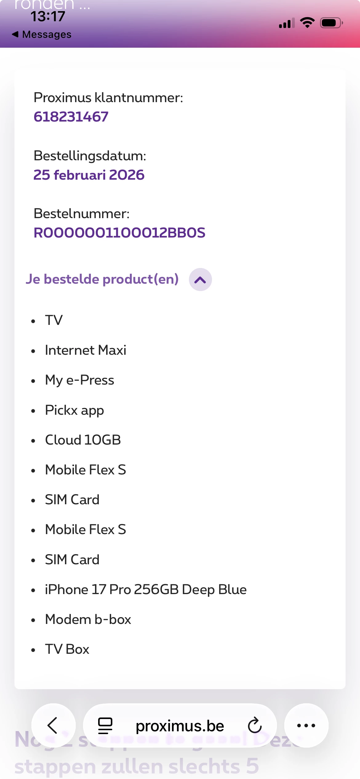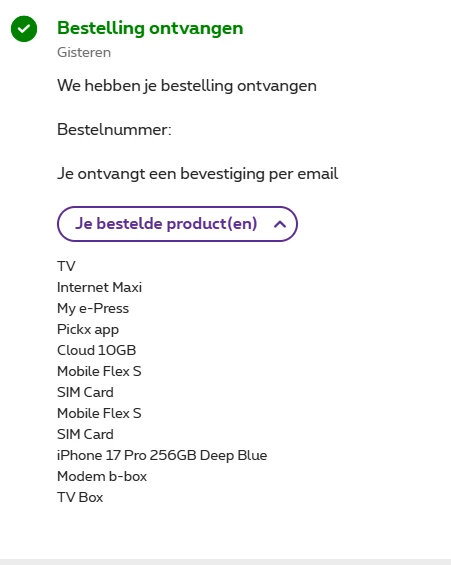 Ik wil een nieuwe iPhone 17 Pro bestellen op een bestaand Mobile Flex S abonnement.