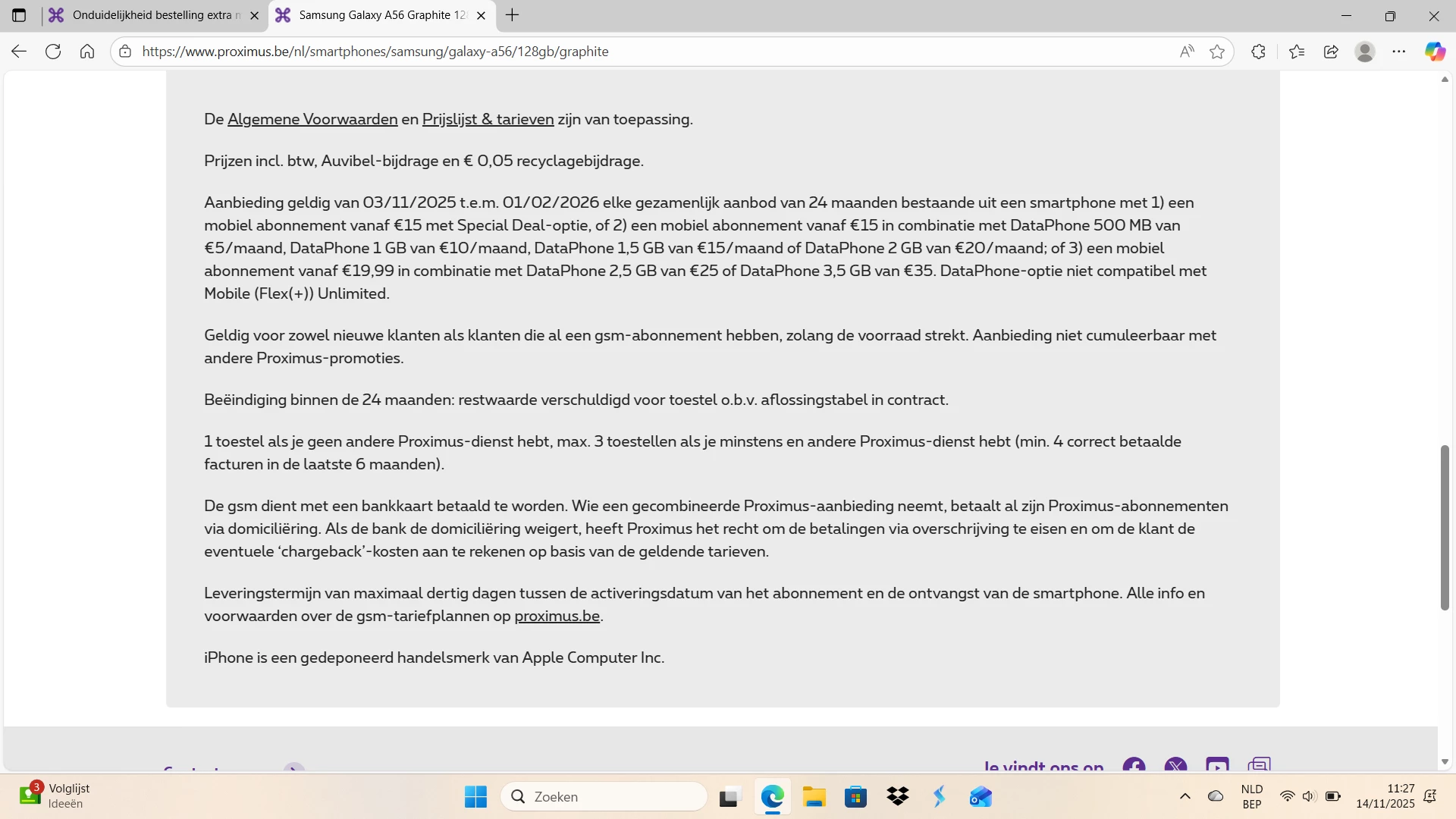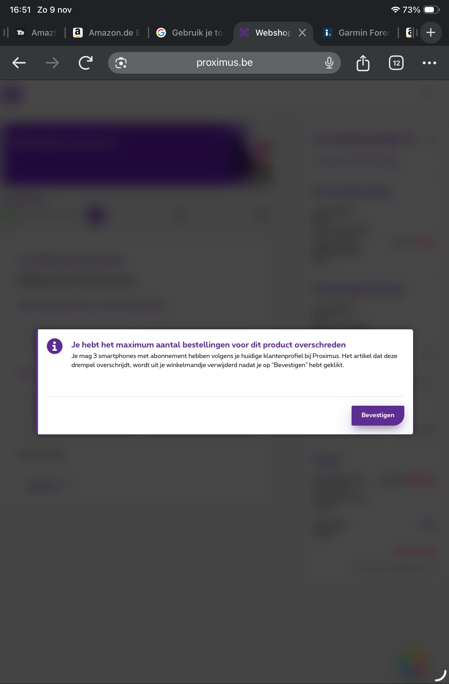 In ons flex pack hebben we al 3 mobiele nummers met telkens het 20GB abonnement. Ik probeerde gisteren een 4de toe te voegen voor mijn kind en ook een roze samsung a56 128 met special deal (eenmalig 199,99), maar ik kreeg de fout hieronder.