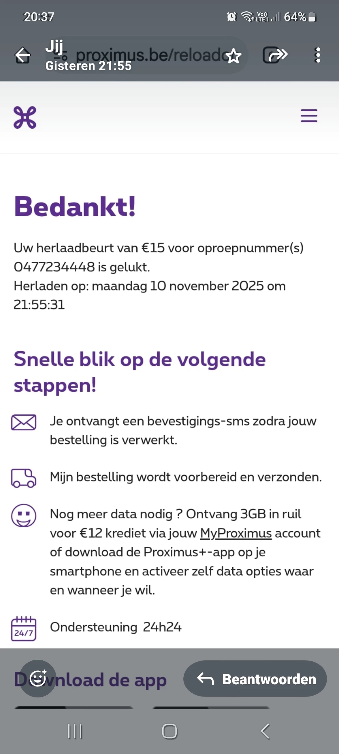 15 euro herladen voor 0477234446 ipv 0477324446 en Proximus scheept mij af. Het foutieve nummer is niet bereikbaar en geeft al 2 dagen foutmelding ´geen toegang tot dit nummer´ en ´ dit nummer is momenteel gestoord´ Hoe krijg ik mijn geld terug? Proximus van m´n kl****