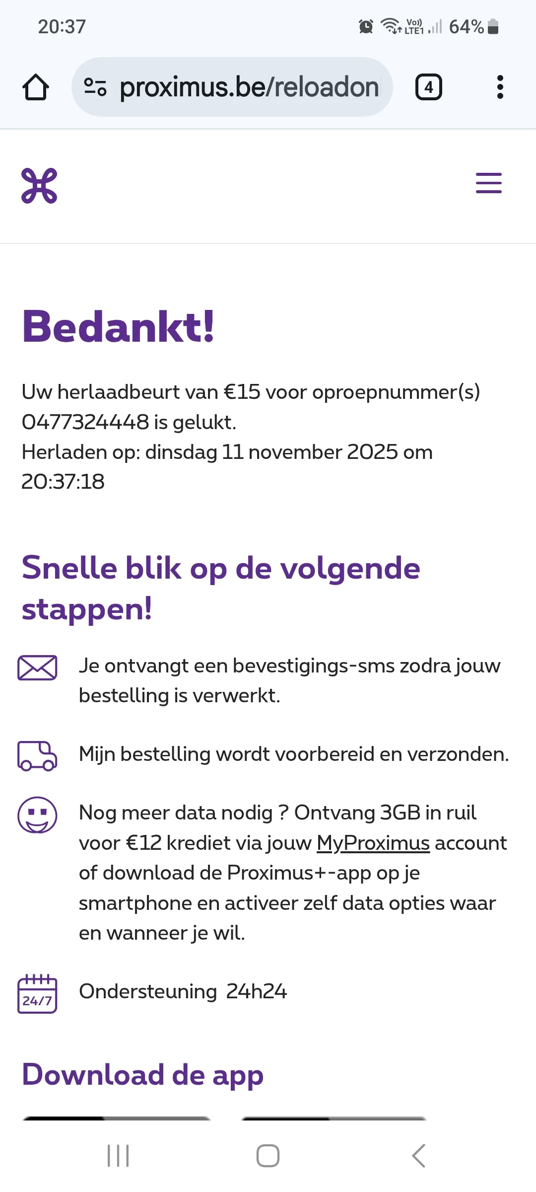 Pay&Go herladen voor foutief gsmnummer