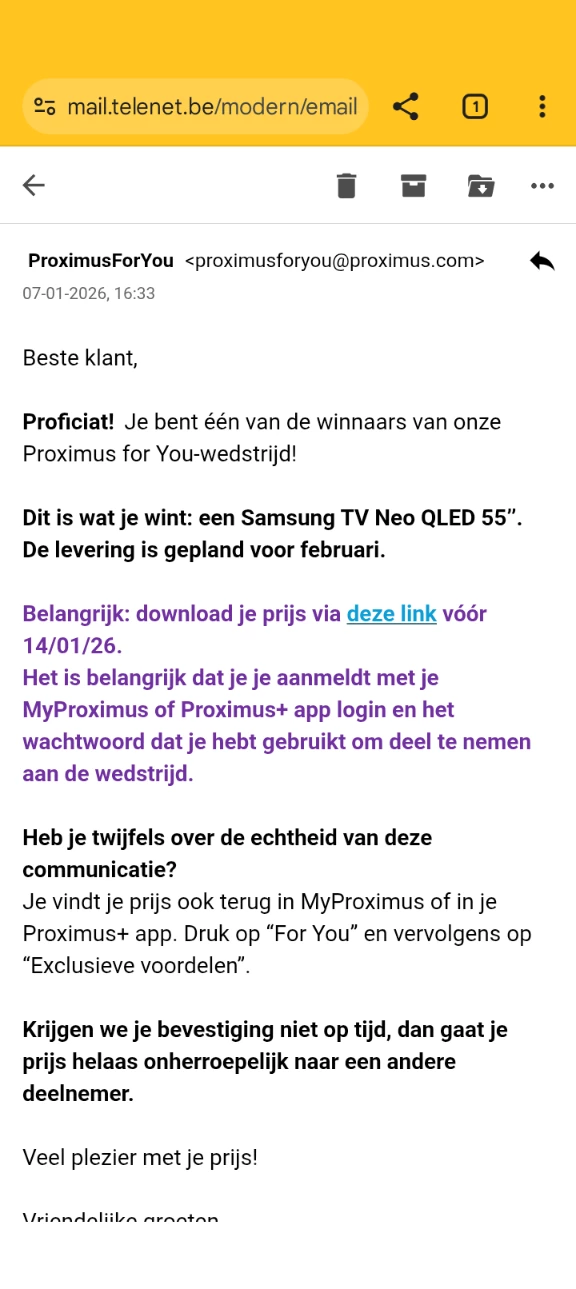Als kers op de taart zal je in de Proximus for You-nieuwsbrief een leuke eindejaarsverrassing vinden.