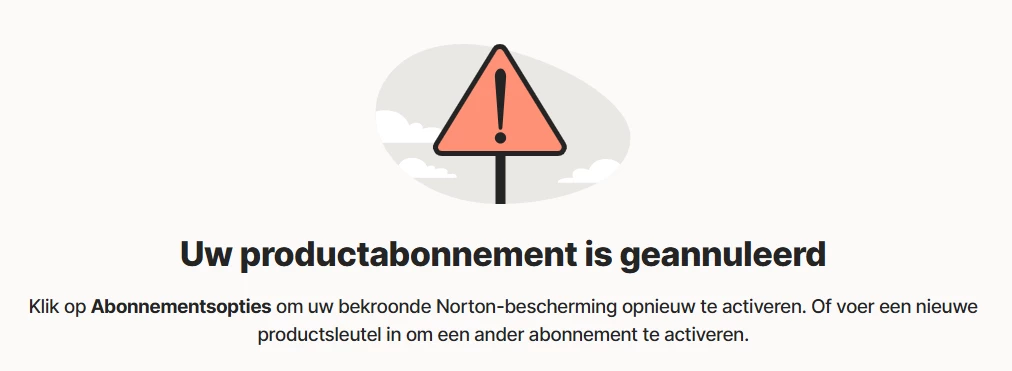 Ik wordt nl. doorgestuurd naar de mynorton.com site waar ik na het aanloggen volgende melding krijg.