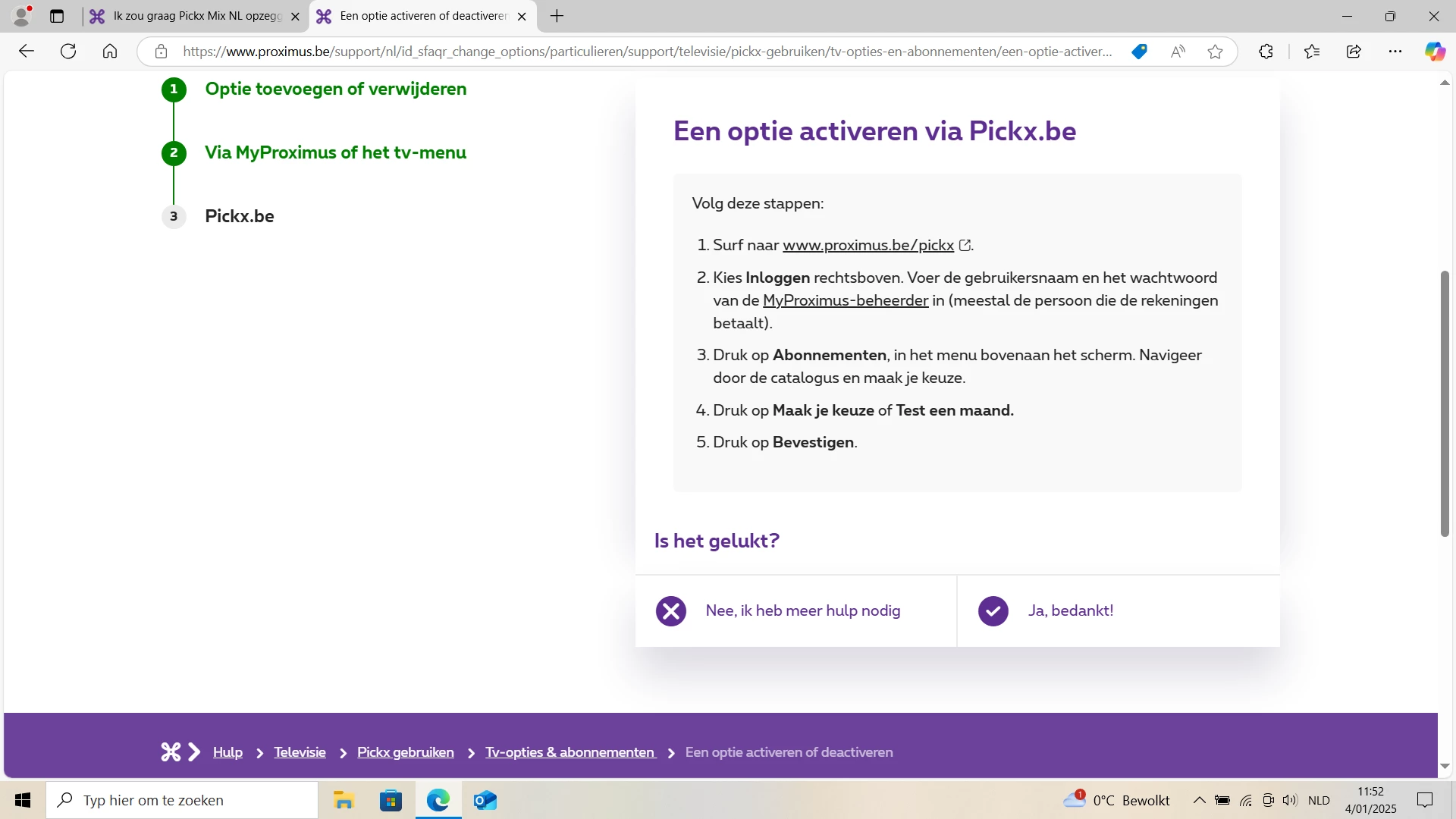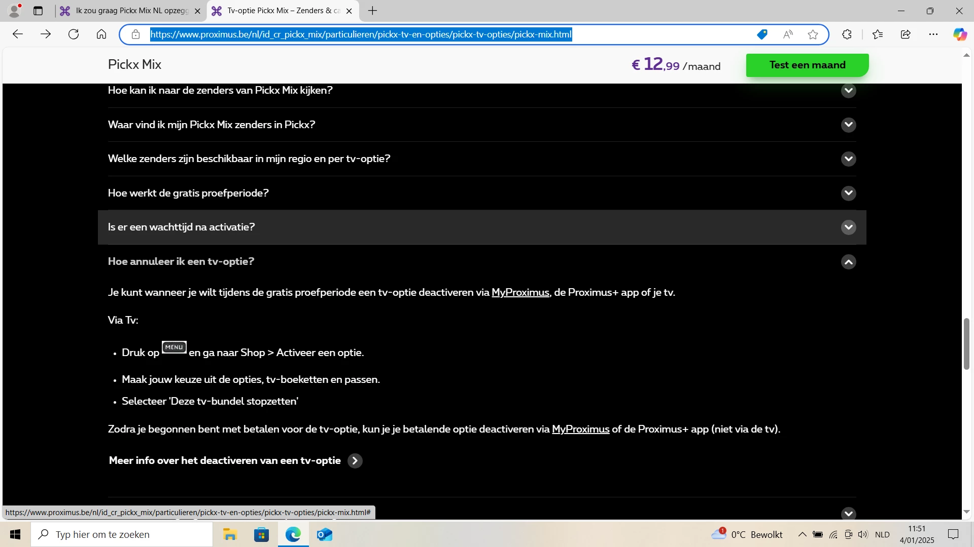 Proximus Pickx mix NL opzeggen