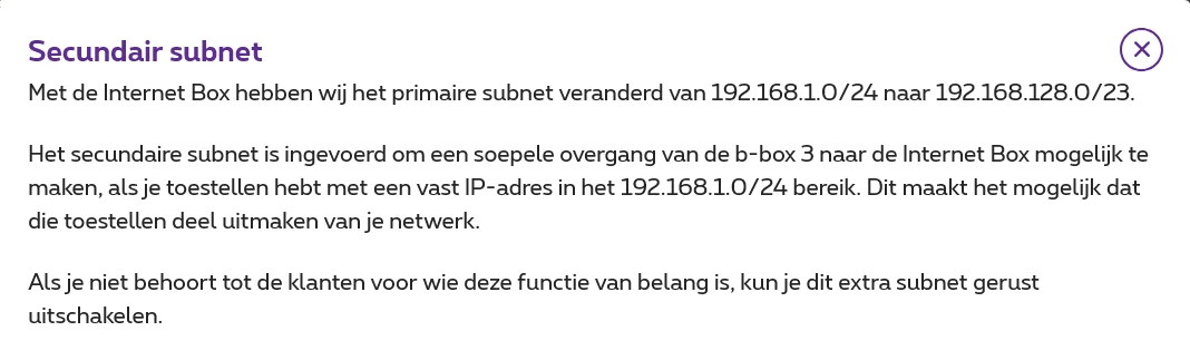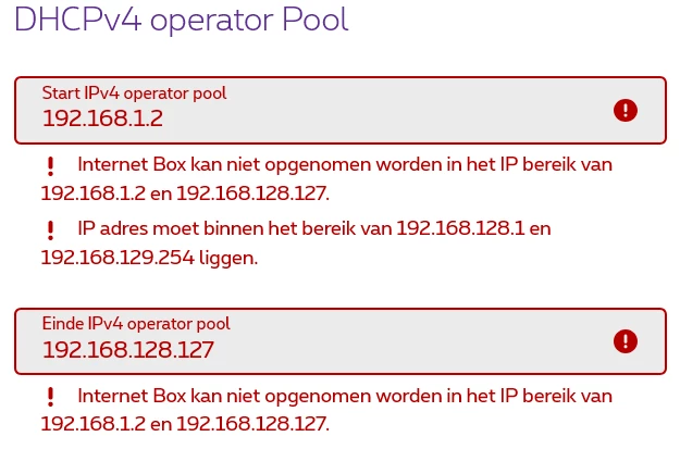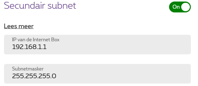 Mijn box deelt ip adressen uit in de range 192.168.129.2-254 ik wil echter ip adressen in de range van het subnet 192.168.1.2-254 hoe stel ik dit in ?